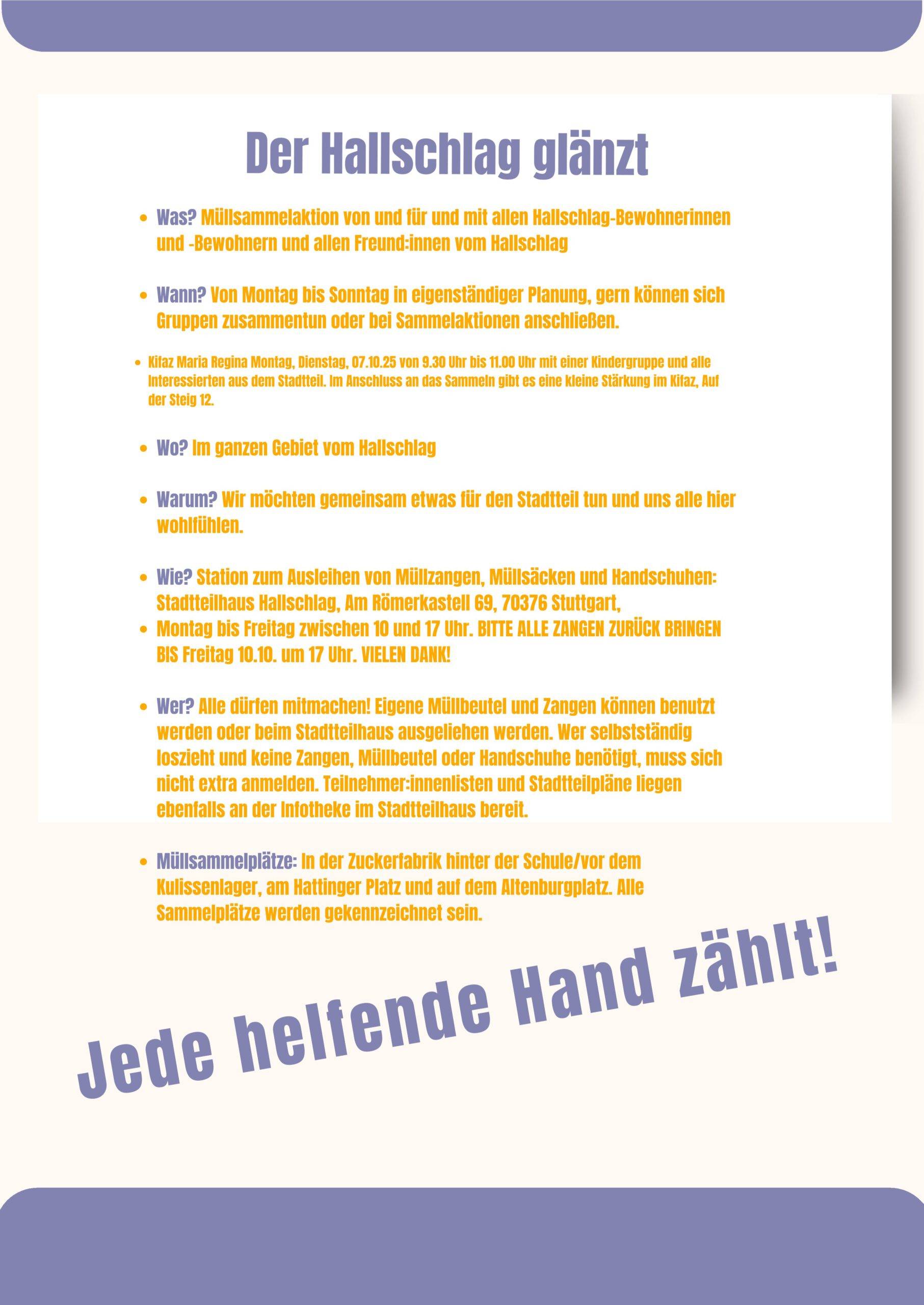 Veranstaltungen im Hallschlag Auf dieser digitalen Pinnwand findet ihr Hinweise auf besondere Veranstaltungen im Stadtteil.